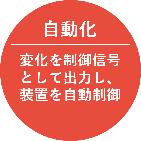 液体や粉体の「量」や「質」の変化に相関して現れる「静電容量」や「比誘電率」変化を連続監視することができます。例えば、その用途に適した電極と組み合わせることで、レベル変化(残量計測)や性状変化(劣化検知)の測定に応用できます。このモジュールは、得られた変化情報を制御用信号として外部出力可能です。